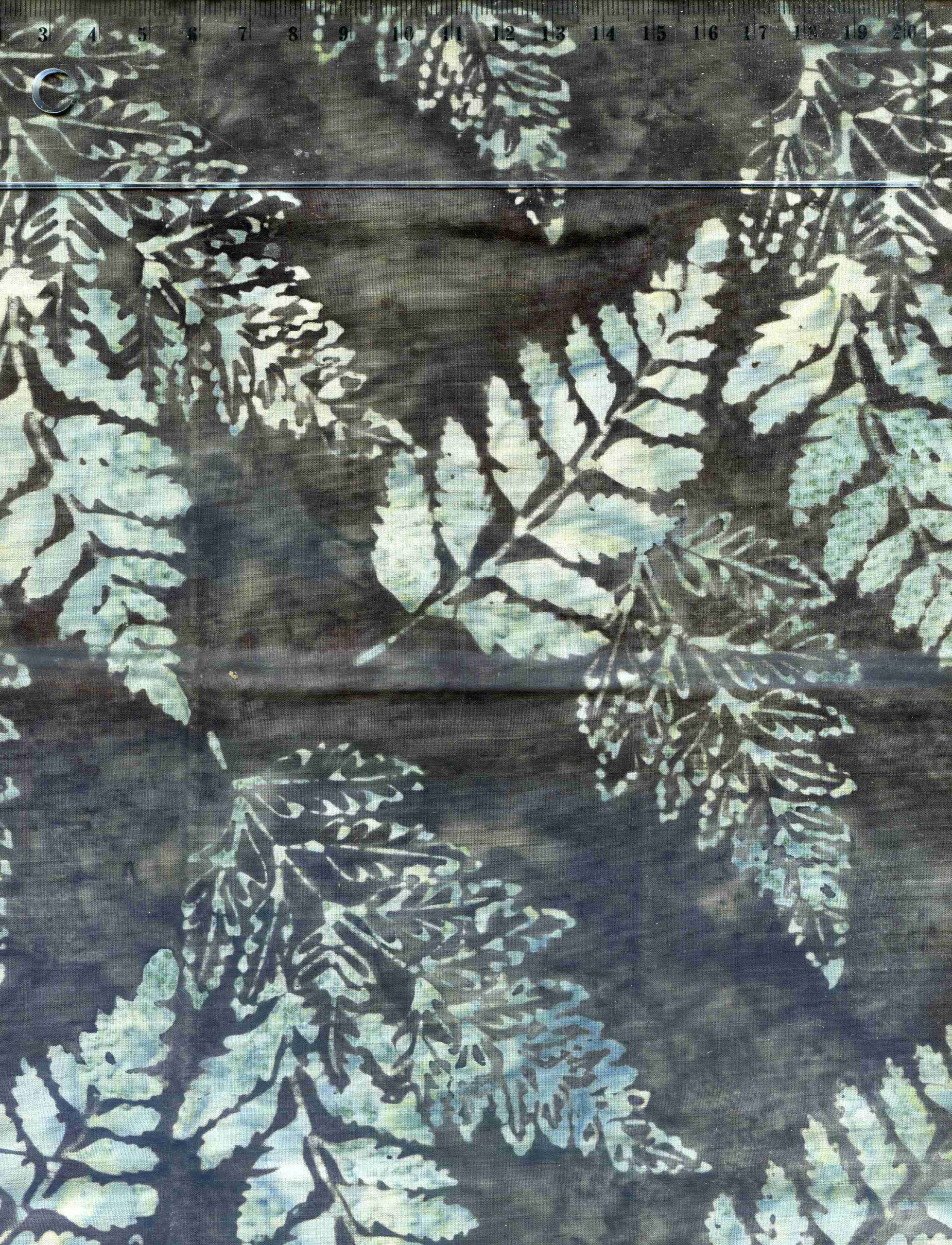 Coupon fat quarter tissu patchwork batick imprimé feuille et gris 50/55 cm