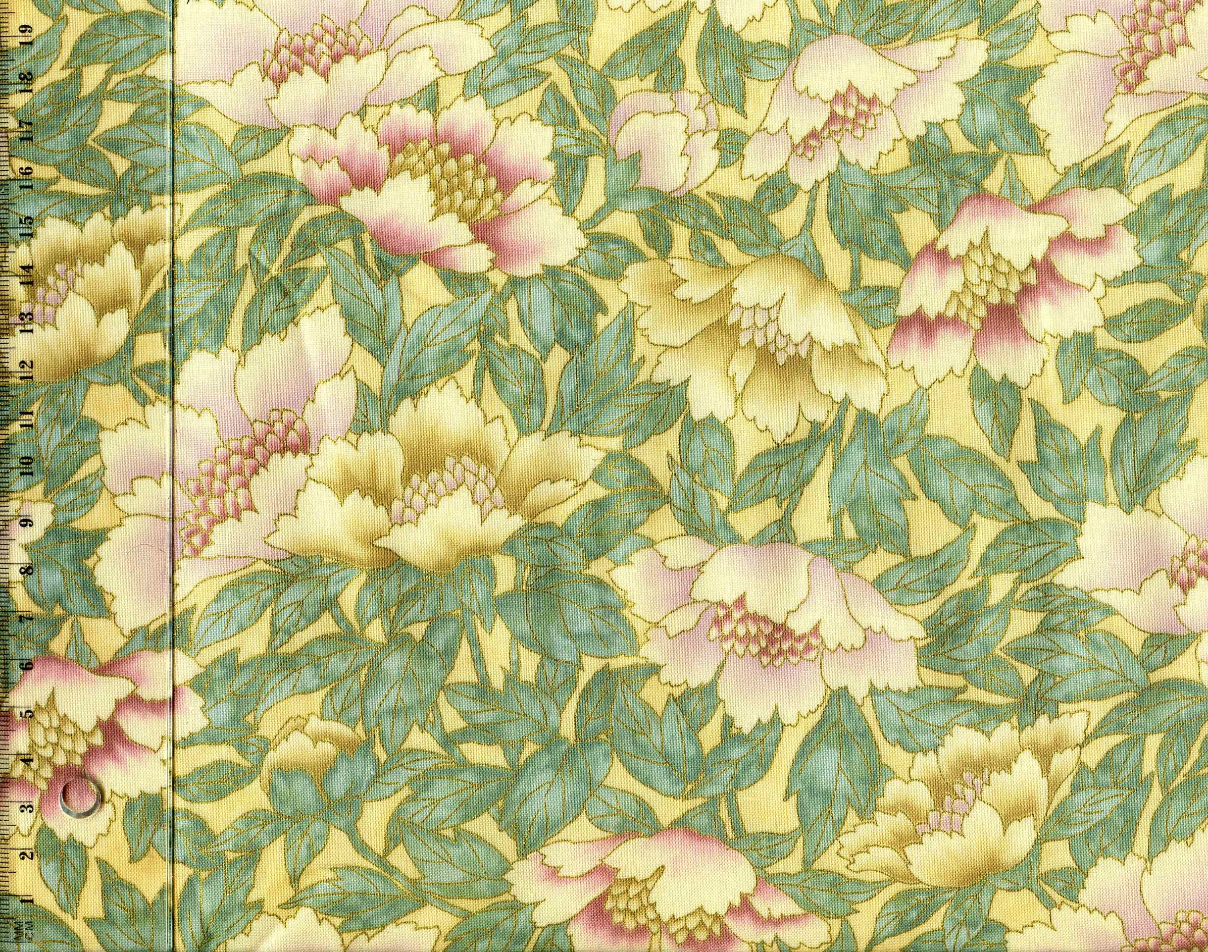 Tissu patchwork hoffman fleurs avec dorure